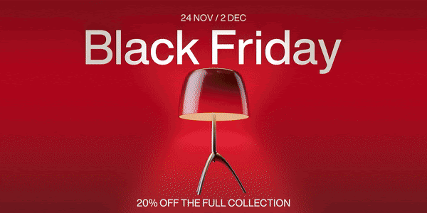 From November 24th through December 2nd, where our clients can enjoy a 20% discount on all Foscarini and Ingo-Maurer lamp purchases plus free shipping within the continental US!
